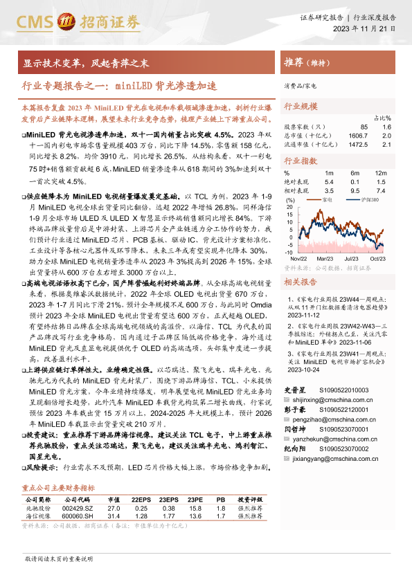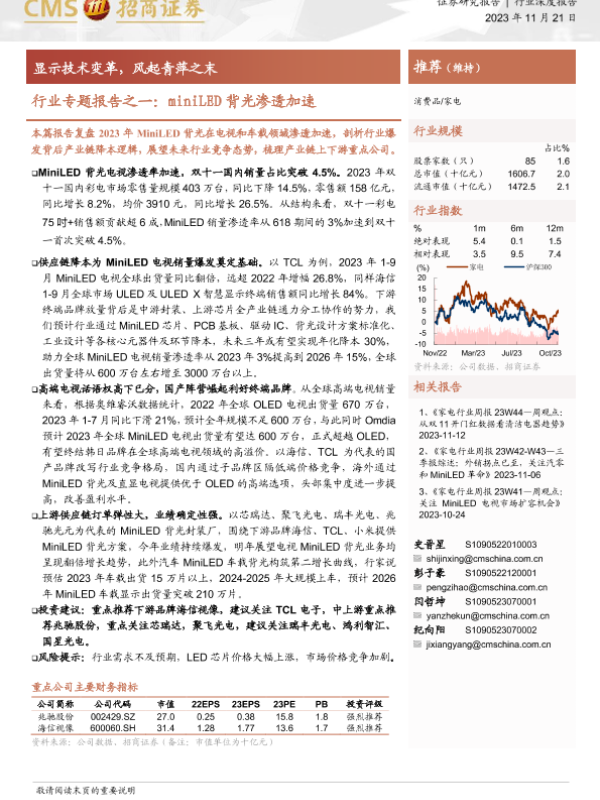 【海通证券】【20231121】家电行业专题报告之一:miniLED背光渗透加速:显示技术变革,风起青萍之末-19页