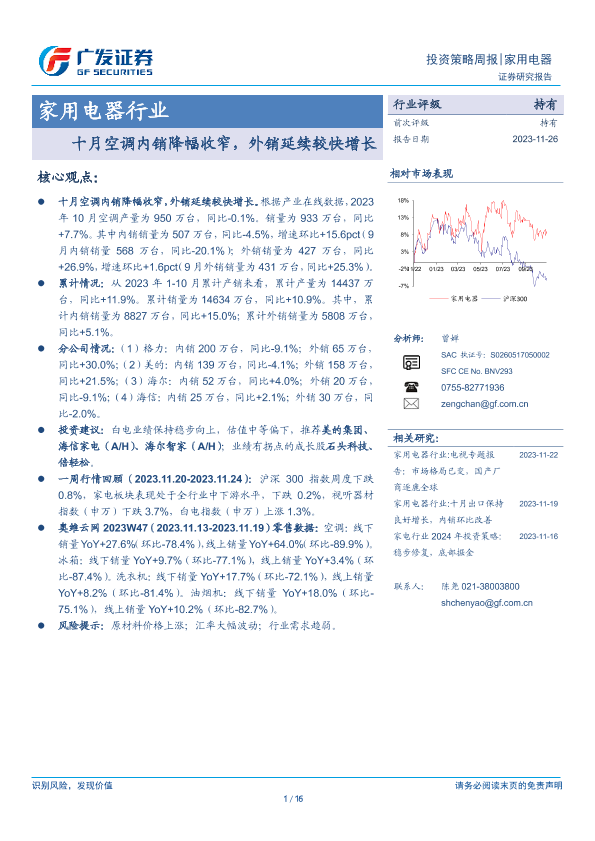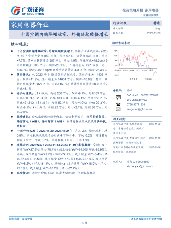 【广发证券】【20231126】家用电器行业投资策略周报:十月空调内销降幅收窄,外销延续较快增长-16页