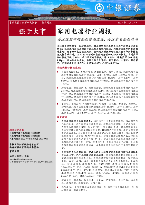 【中银证券】【20231127】家用电器行业周报:关注通用照明企业转型进展,关注家电企业动向-23页