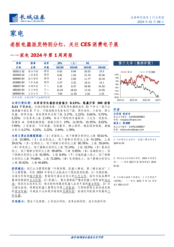 【长城证券】【20240108】家电2024年第1周周报:老板电器派发特别分红,关注CES消费电子展-22页
