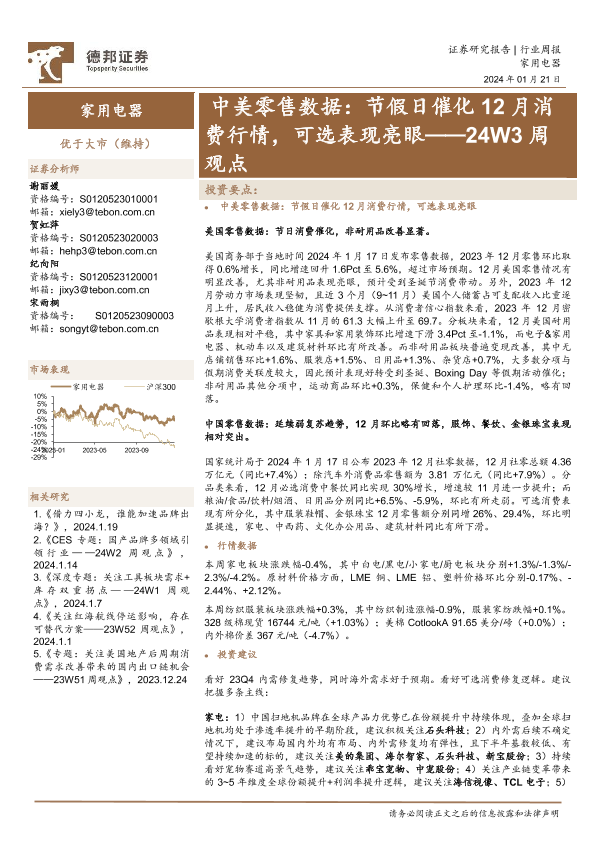 【德邦证券】【20240121】24W3周观点:中美零售数据:节假日催化12月消费行情,可选表现亮眼-18页