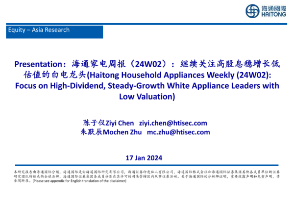 【海通国际】【20240117】海通家电周报(24W02):继续关注高股息稳增长低估值的白电龙头-33页