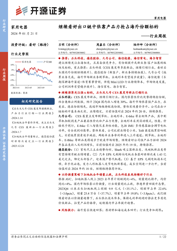 【开源证券】【20240121】家用电器行业周报:继续看好出口链中依靠产品力抢占海外份额标的-22页