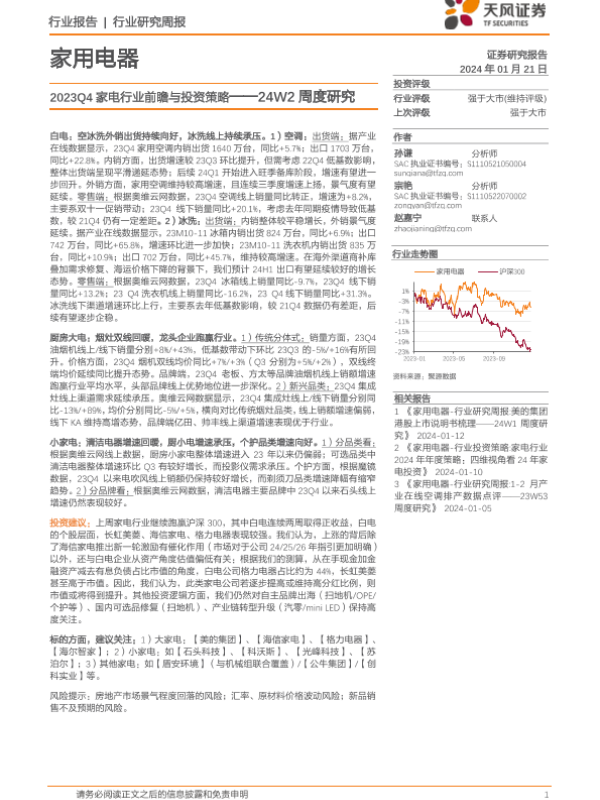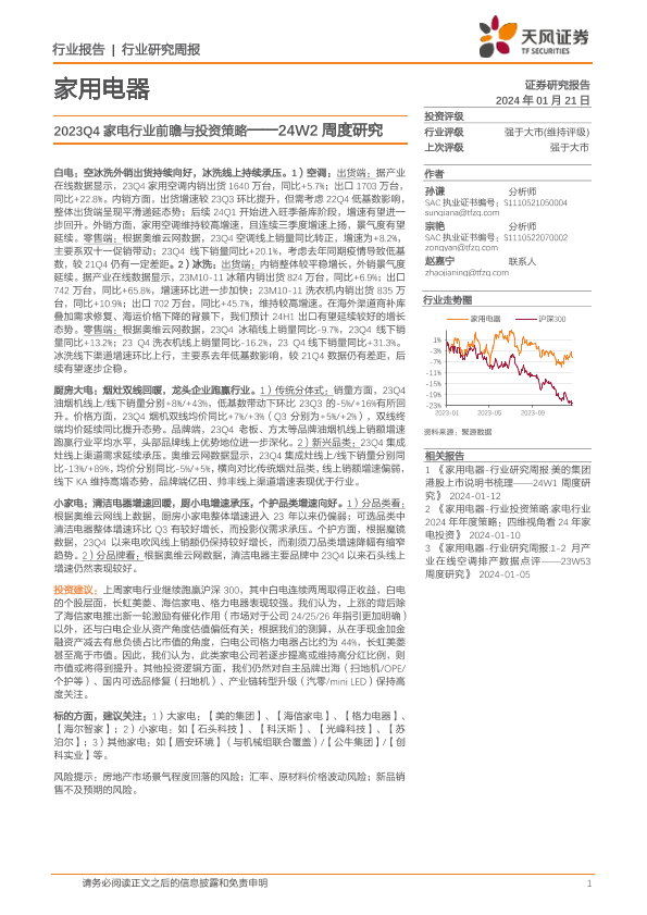 【天风证券】【20240121】家用电器行业24W2周度研究:2023Q4家电行业前瞻与投资策略-25页