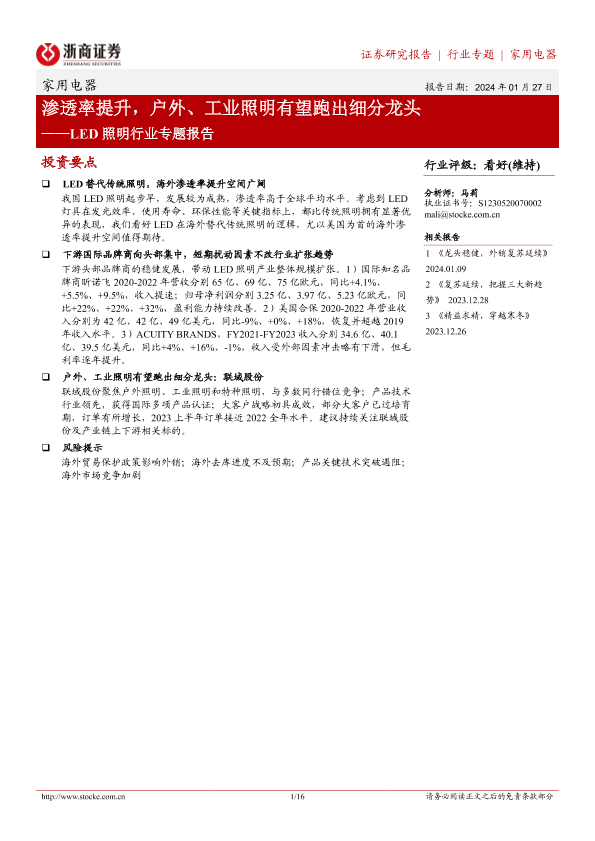 【浙商证券】【20240127】LED照明行业专题报告:渗透率提升,户外、工业照明有望跑出细分龙头-16页