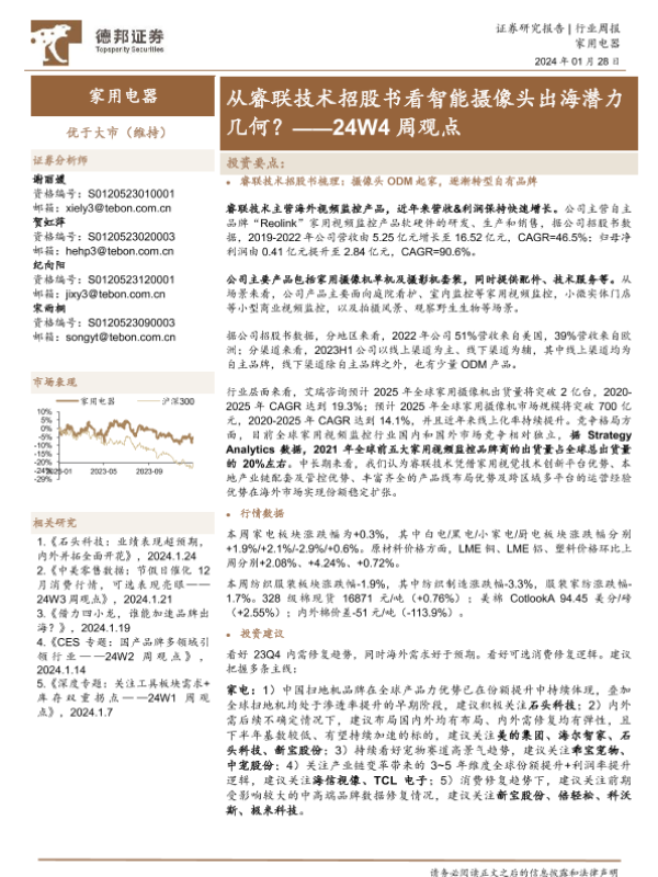 【德邦证券】【20240128】从睿联技术招股书看智能摄像头出海潜力几何?-20页