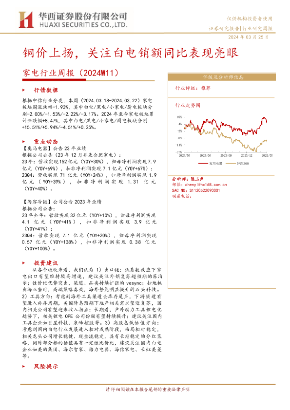 【华西证券】【20240325】2024W11家电行业周报:铜价上扬,关注白电销额同比表现亮眼-12页