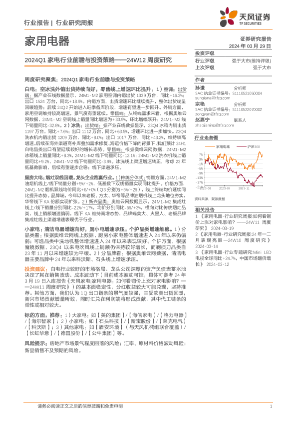【天风证券】【20240329】2024Q1家电行业前瞻与投资策略-24页