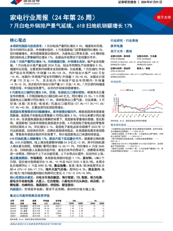 【国信证券】【20240701】家电行业周报(24年第26周):7月白电外销排产景气延续,618扫地机销额增长17%-15页