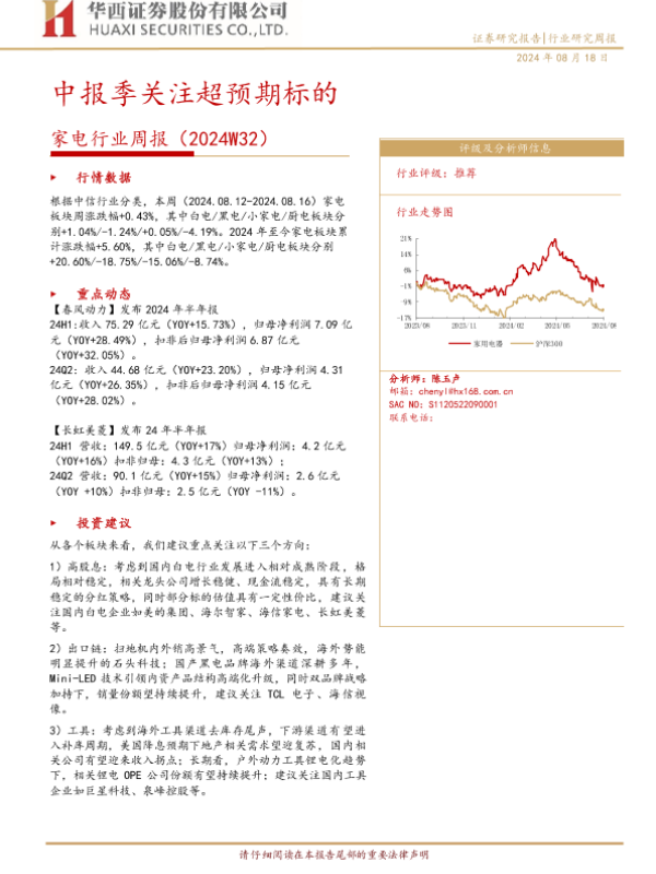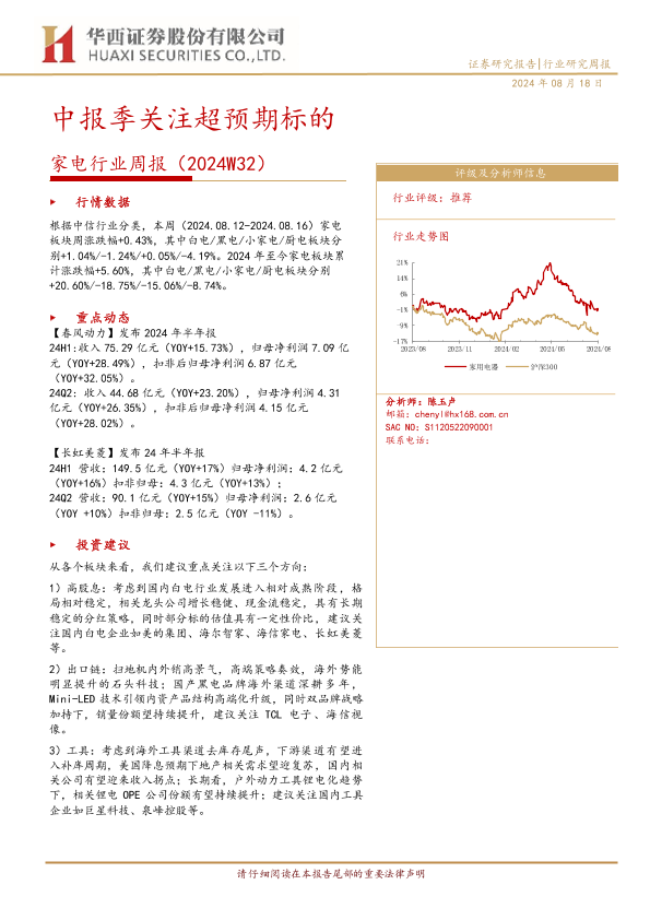 【华西证券】【20240818】家电行业周报(2024W32):中报季关注超预期标的-12页