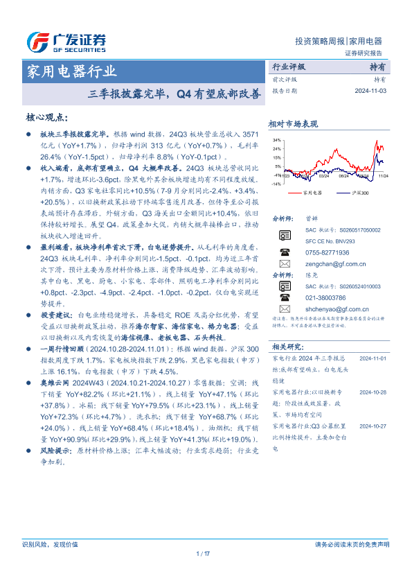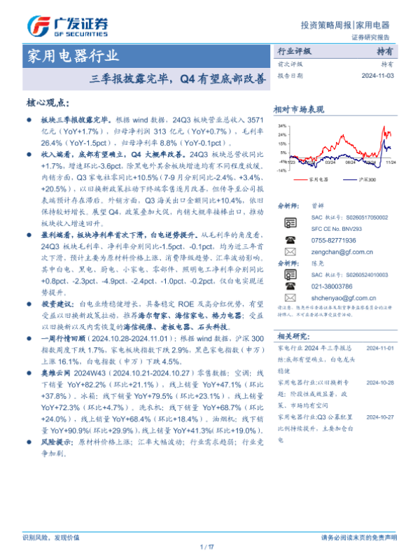 【广发证券】【20241103】家用电器行业:三季报披露完毕,Q4有望底部改善-17页