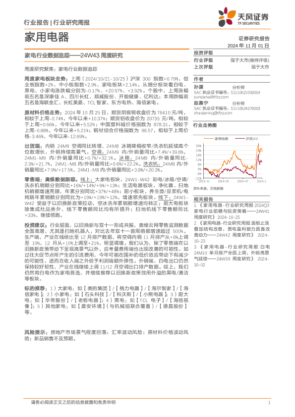 【天风证券】【20241101】24W43周度研究:家电行业数据追踪-10页