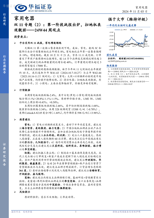 【华福证券】【20241103】家用电器24W44周观点:双11专题(2):第一阶段战报出炉,扫地机表现靓丽-15页