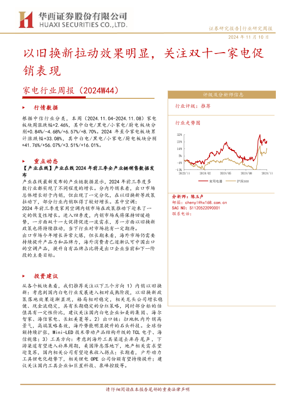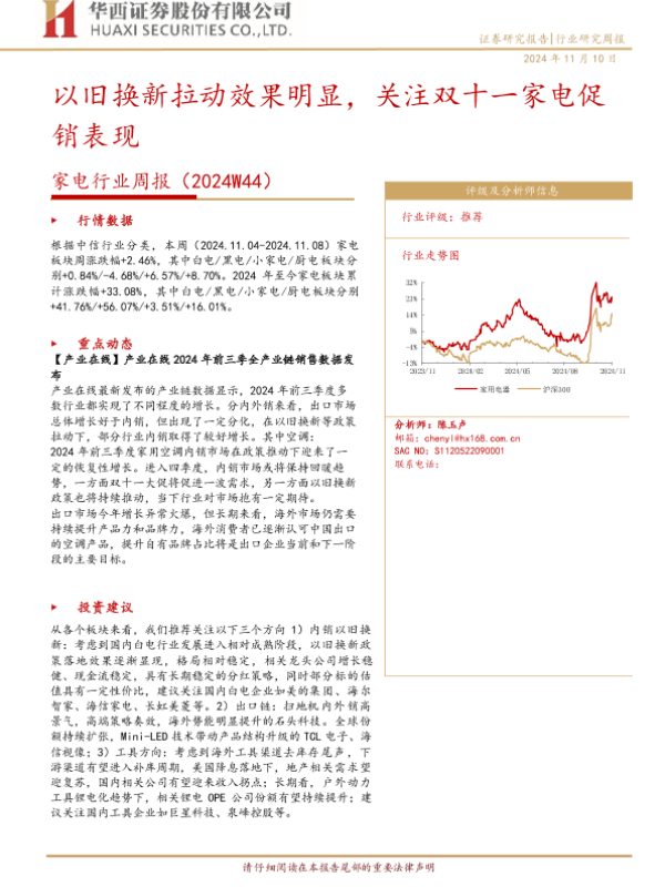 【华西证券】【20241110】家电行业周报(2024W44):以旧换新拉动效果明显,关注双十一家电促销表现-12页