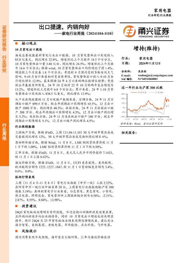 【甬兴证券】【20241112】20241112-甬兴证券-家电行业周报:出口提速,内销向好-10页