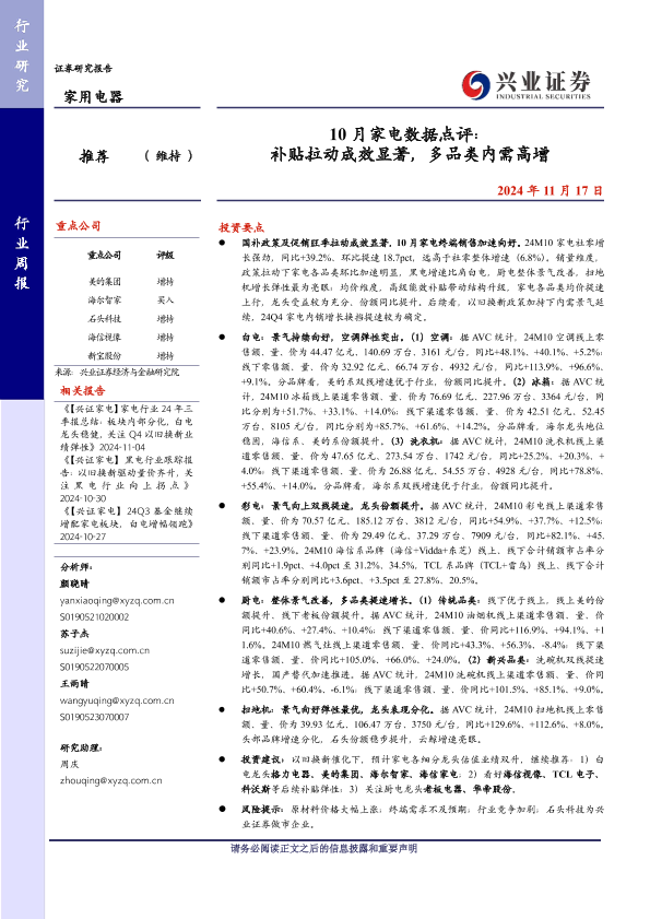 【兴业证券】【20241117】10月家电数据点评:补贴拉动成效显著,多品类内需高增-13页