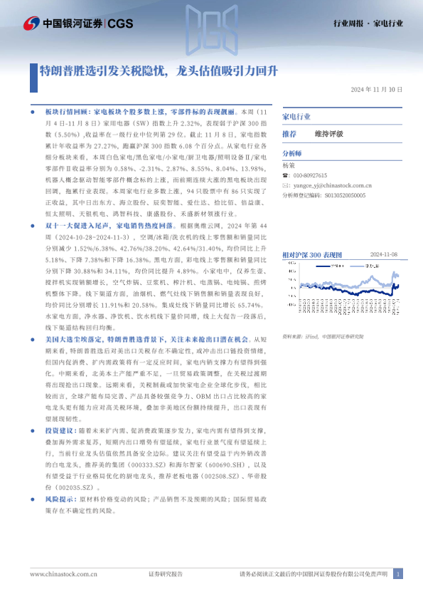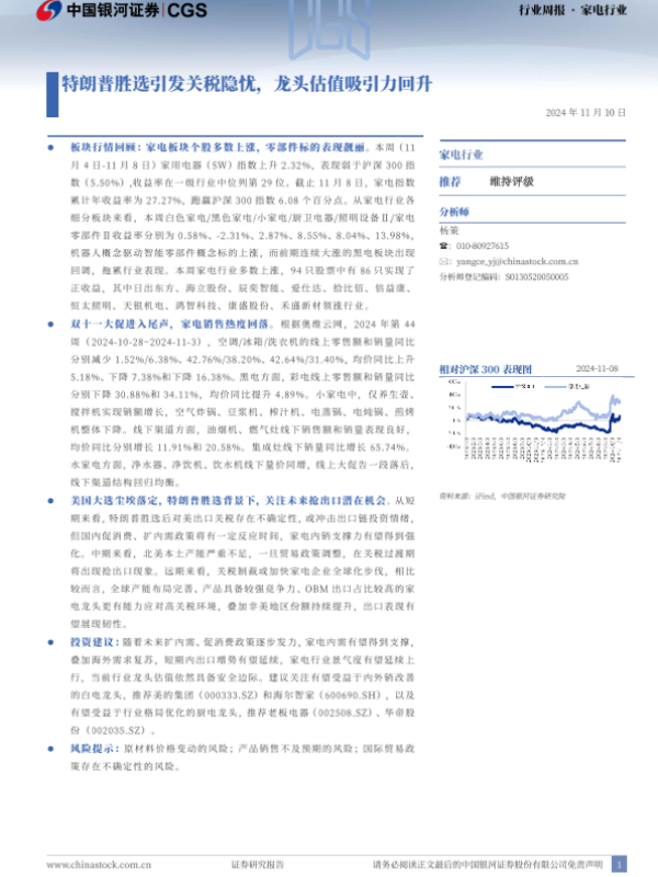 【银河证券】【20241108】20241110-中国银河-家电行业行业周报:特朗普胜选引发关税隐忧,龙头估值吸引力回升-10页