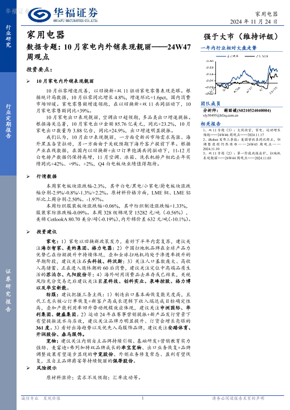 【华福证券】【20241124】家用电器数据专题:10月家电内外销表现靓丽——24W47周观点-14页