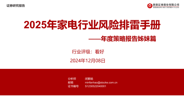 【浙商证券】【20241208】2025年家电行业风险排雷手册——年度策略报告姊妹篇-16页
