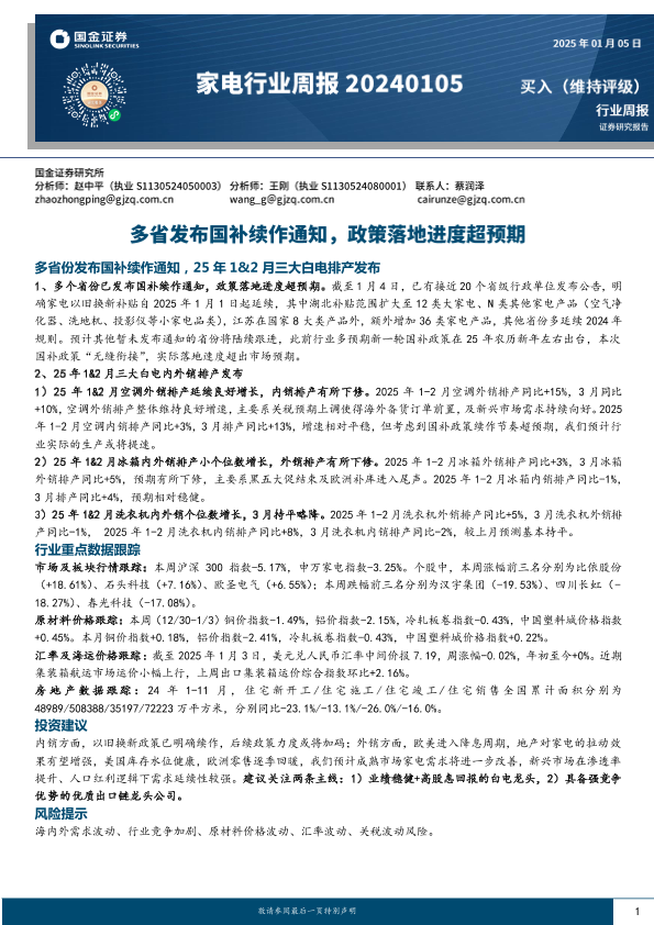 【国金证券】【20250105】家电行业周报:多省发布国补续作通知,政策落地进度超预期-13页