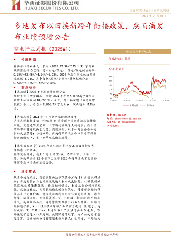 【华西证券】【20250106】家电行业周报(2025W1):多地发布以旧换新跨年衔接政策,惠而浦发布业绩预增公告-12页