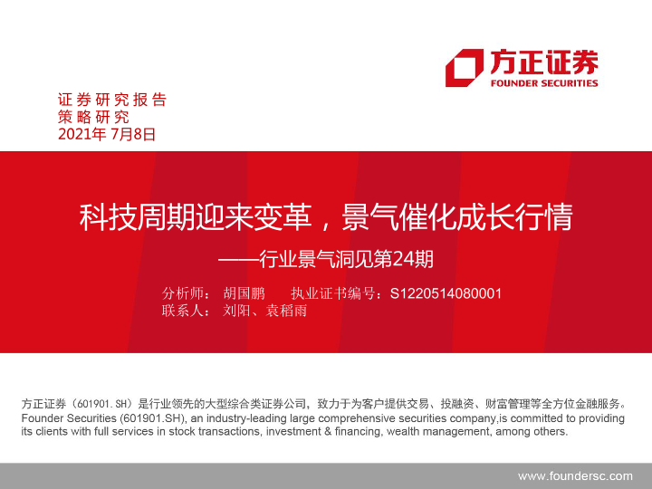 【方正证券】【20210708】行业景气洞见第24期:科技周期迎来变革,景气催化成长行情-50页