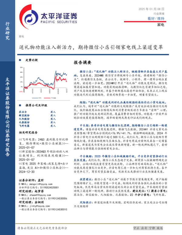 【太平洋证券】【20250108】家电行业周报:送礼物功能注入新活力,期待微信小店引领家电线上渠道变革-12页