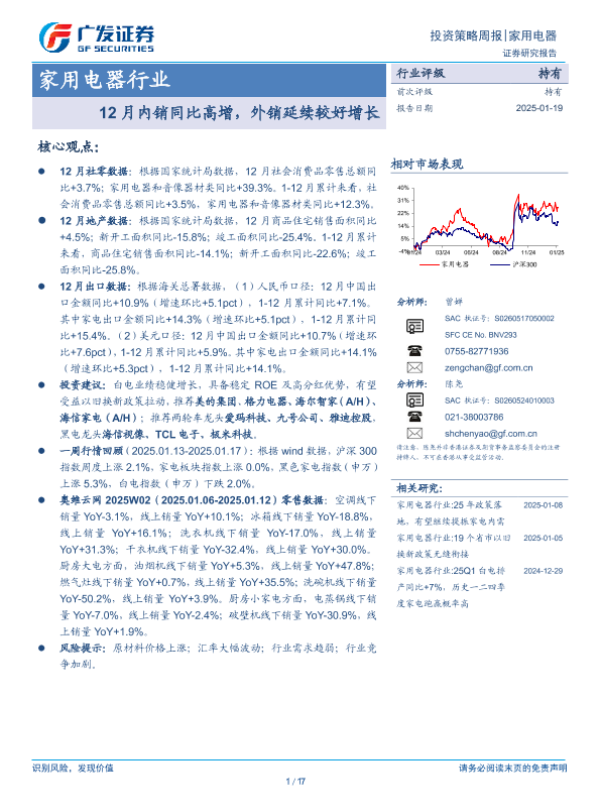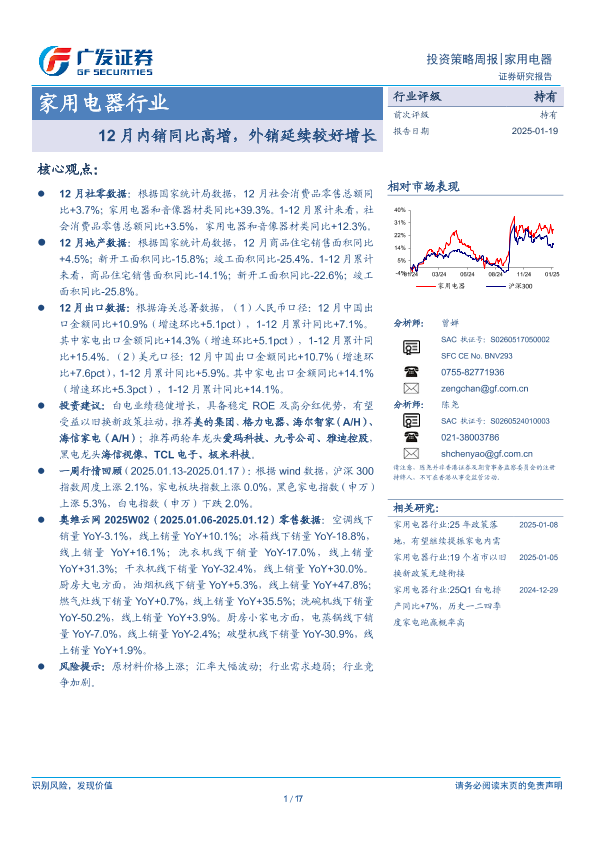 【广发证券】【20250119】20250119-广发证券-家用电器行业投资策略周报:12月内销同比高增,外销延续较好增长-17页