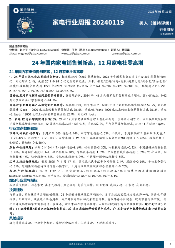 【国金证券】【20250119】24年国内家电销售创新高,12月家电社零高增-13页