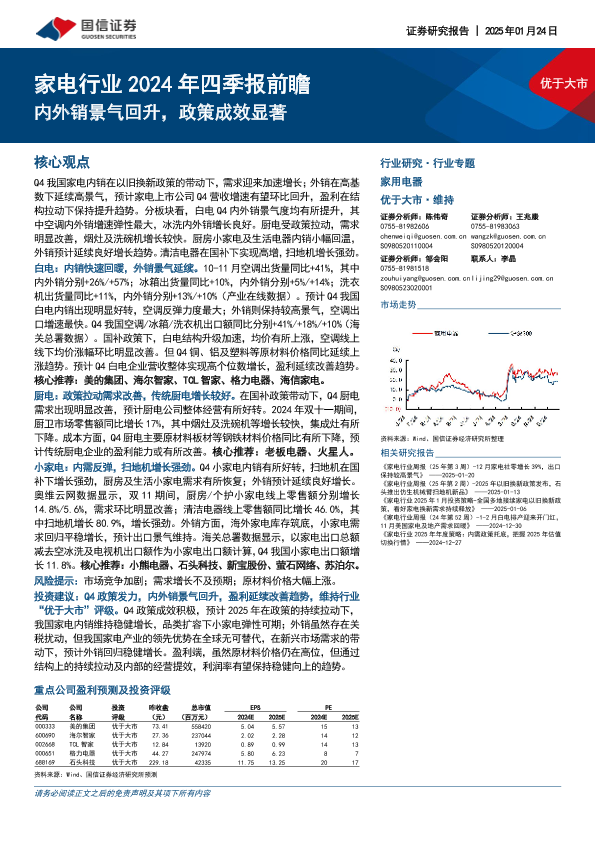 【国信证券】【20250124】家电行业2024年四季报前瞻:内外销景气回升,政策成效显著-19页