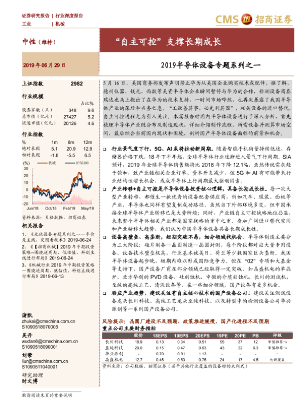 半导体设备 招商证券 自主可控 行业深度报告 长期成长