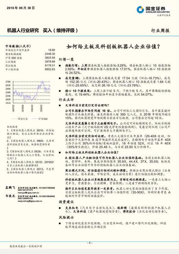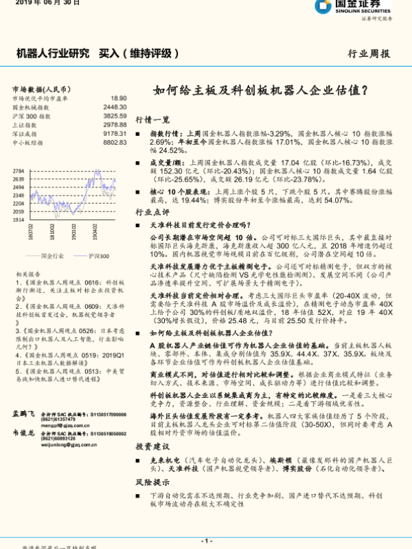 【国金证券】【20190630】20190630-国金证券-机器人行业周报:如何给主板及科创板机器人企业估值?-17页