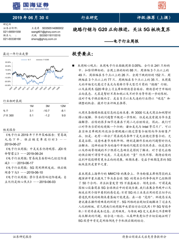【国海证券】【20190630】电子行业周报:绕路行销与G20正向推进,关注5G板块复苏-13页