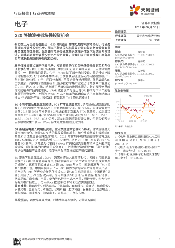 【天风证券】【20190630】20190630-天风证券-电子行业研究周报:G20落地迎接板块性投资机会-8页