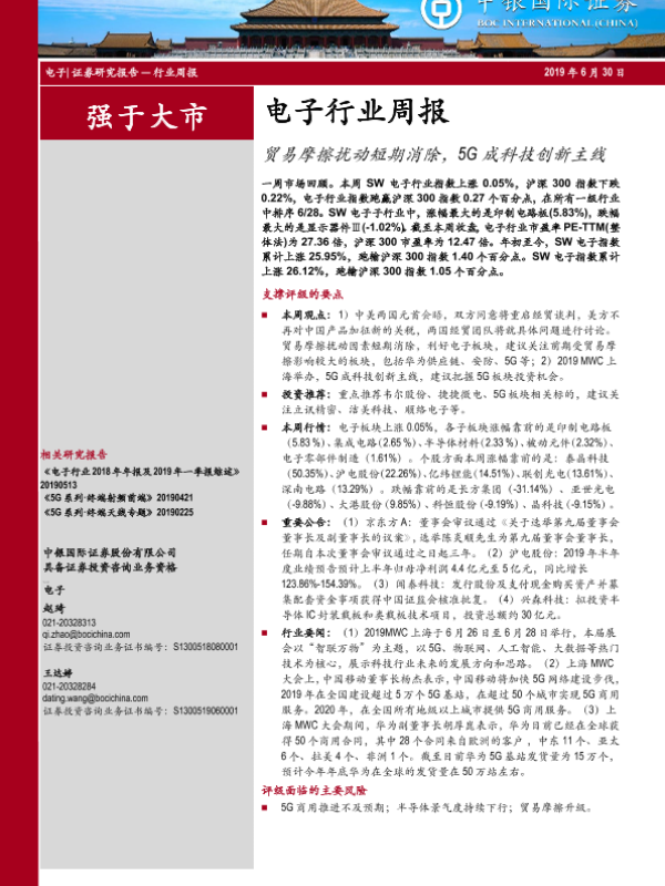 【中银证券】【20190630】电子行业周报:贸易摩擦扰动短期消除,5G成科技创新主线-18页