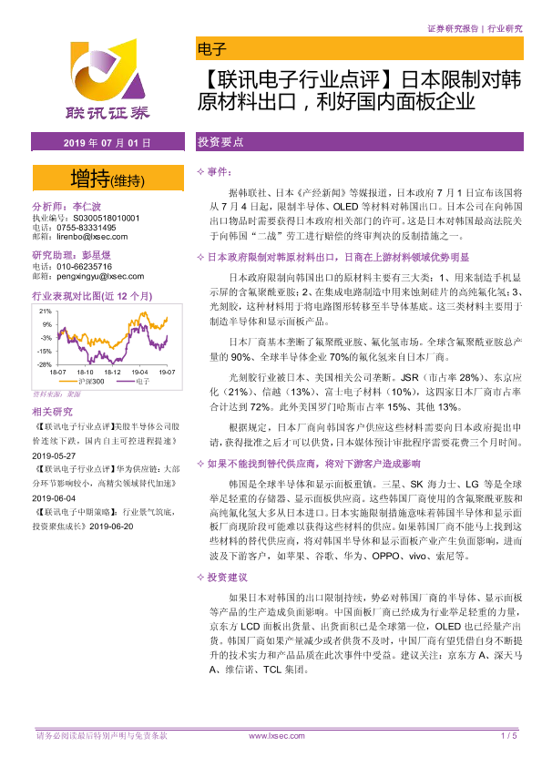 【粤开证券】【20190701】日本限制对韩原材料出口,利好国内面板企业-5页