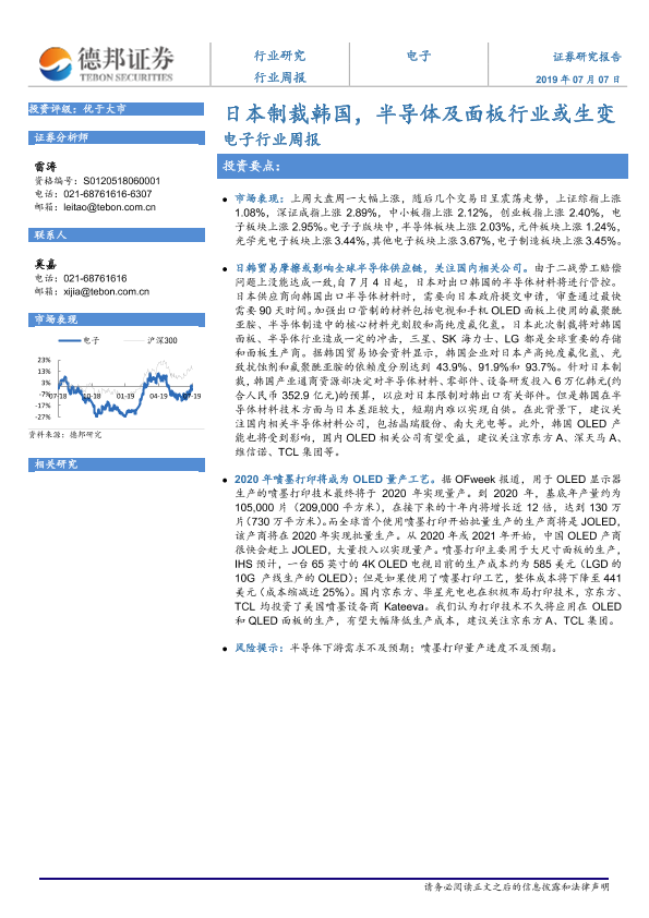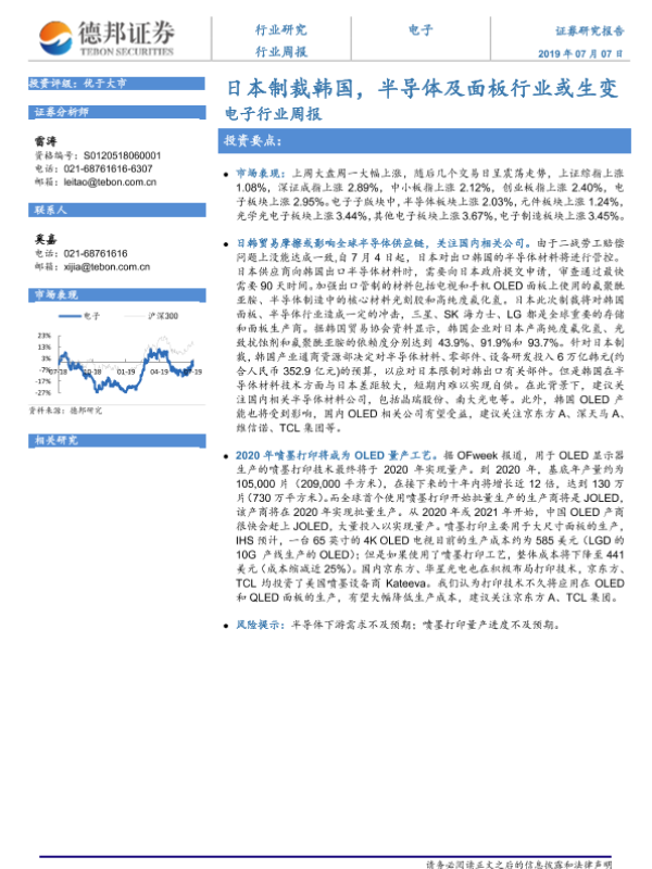 【德邦证券】【20190707】20190707-德邦证券-电子行业周报:日本制裁韩国,半导体及面板行业或生变-4页