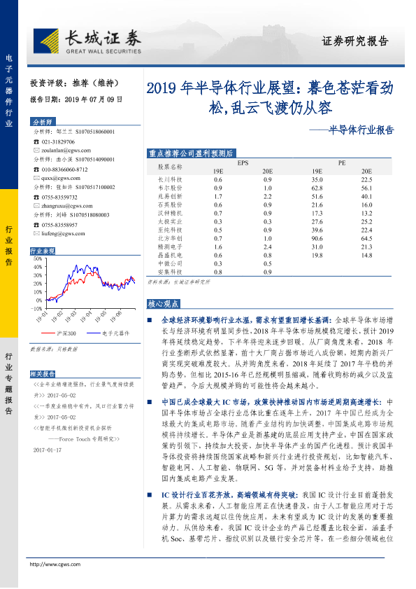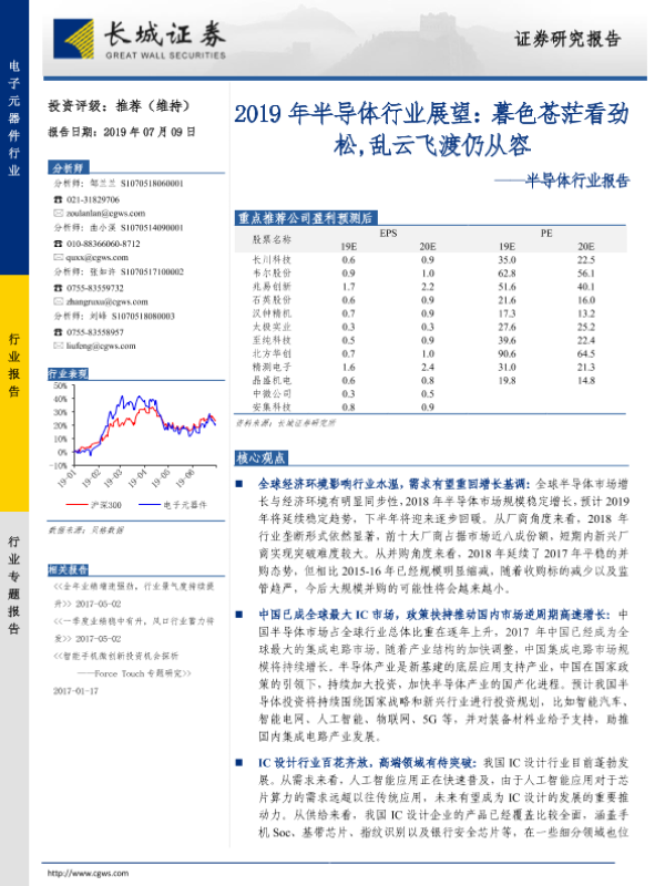 【长城证券】【20190709】2019年半导体行业展望:暮色苍茫看劲松,乱云飞渡仍从容-122页