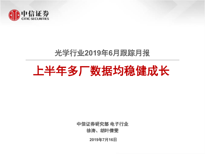 【中信证券】【20190716】光学行业2019年6月跟踪月报:上半年多厂数据均稳健成长-19页