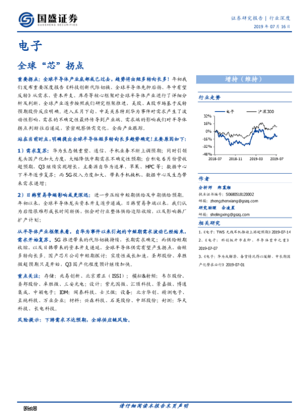【国盛证券】【20190716】电子行业深度:全球“芯”拐点-22页