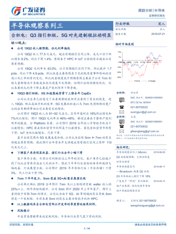【广发证券】【20190721】台积电:Q3指引积极,5G对先进制程拉动明显-14页