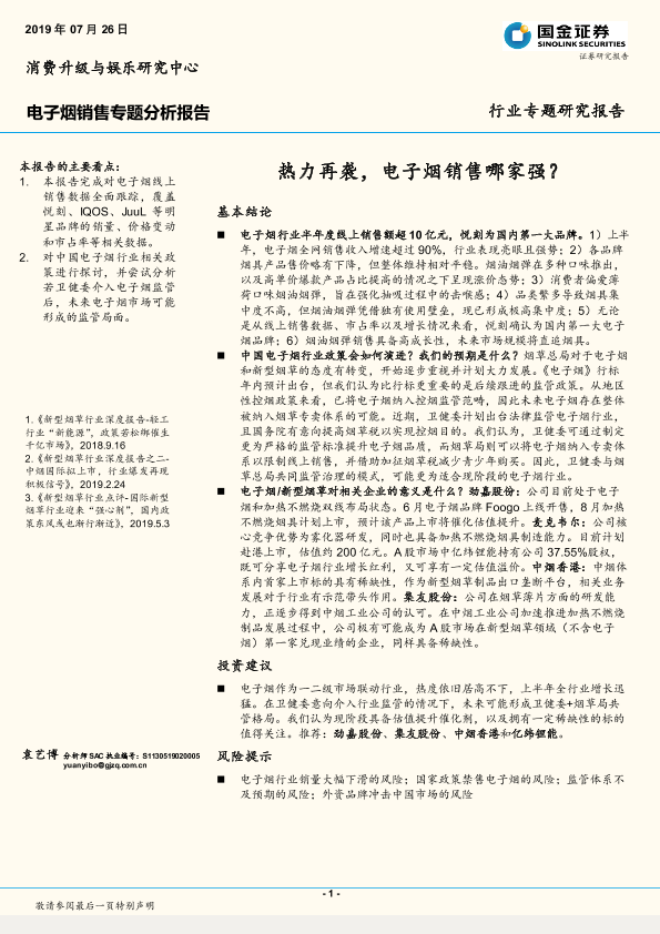 【国金证券】【20190726】热力再袭,电子烟销售哪家强?-16页
