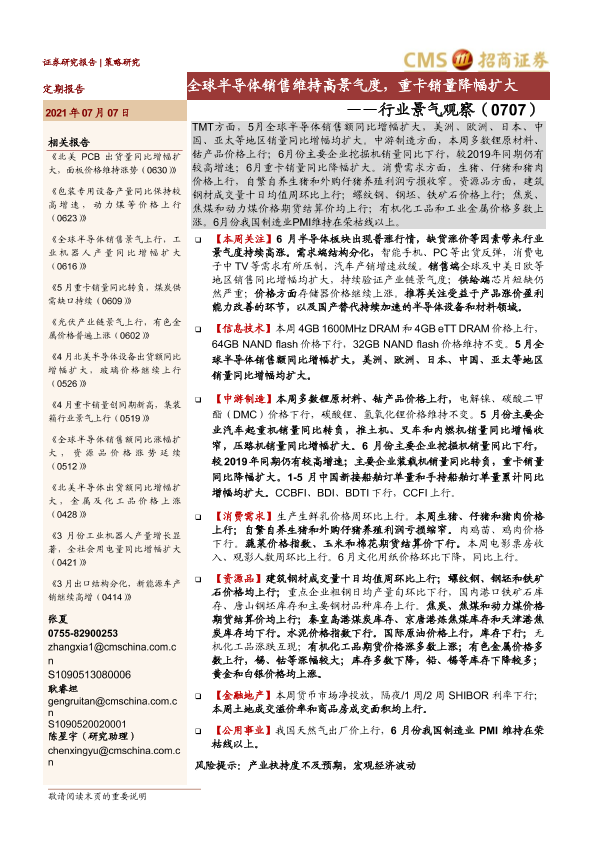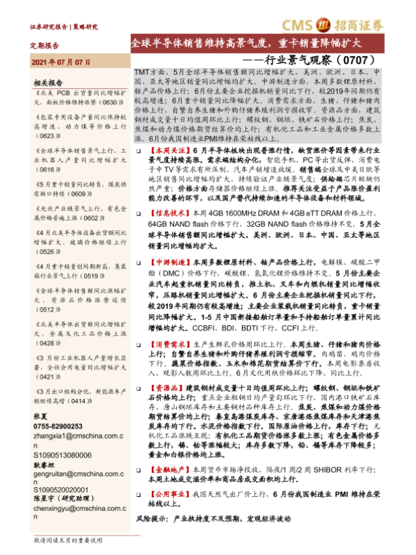【海通证券】【20210707】行业景气观察(0707):全球半导体销售维持高景气度,重卡销量降幅扩大-32页