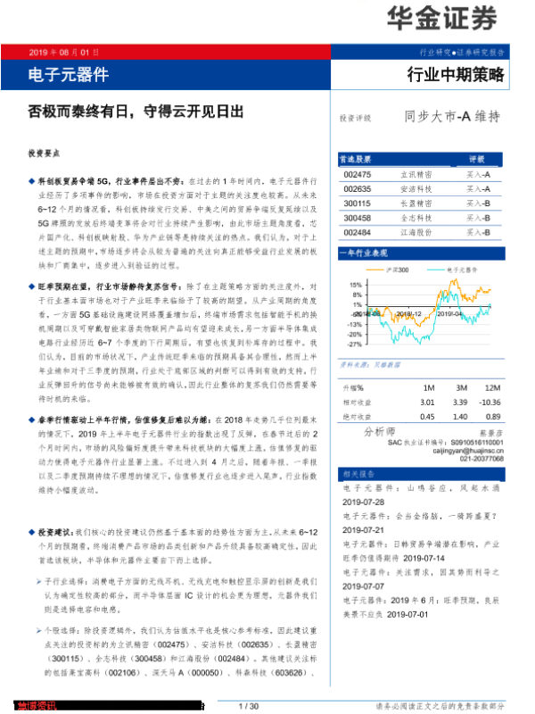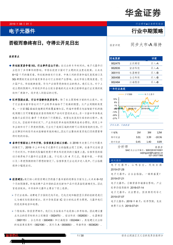 【华金证券】【20190801】电子元器件行业中期策略:否极而泰终有日,守得云开见日出-30页