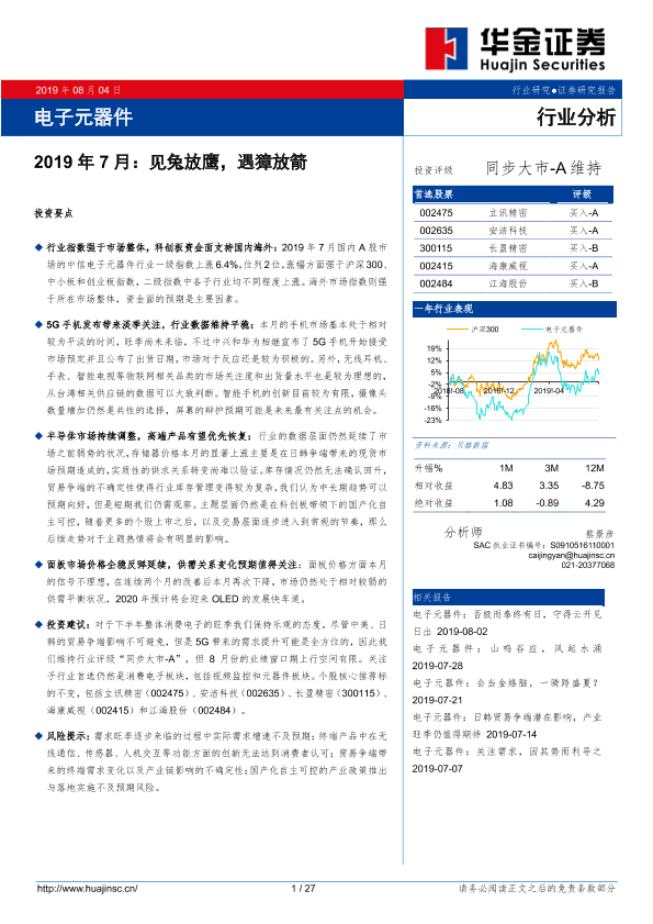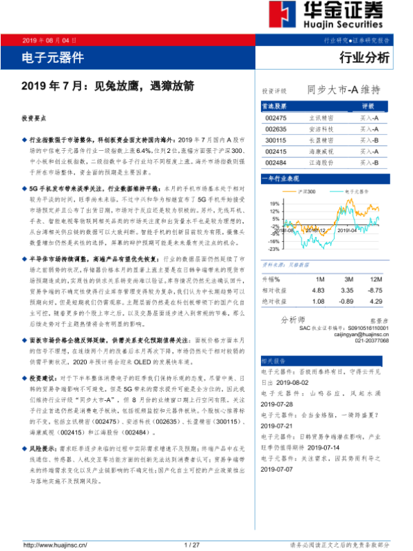 【华金证券】【20190804】电子元器件2019年7月:见兔放鹰,遇獐放箭-27页