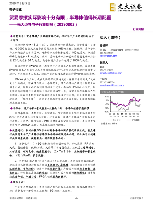 【光大证券】【20190805】电子行业周报:贸易摩擦实际影响十分有限,半导体值得长期配置-18页