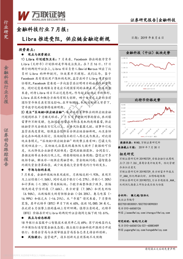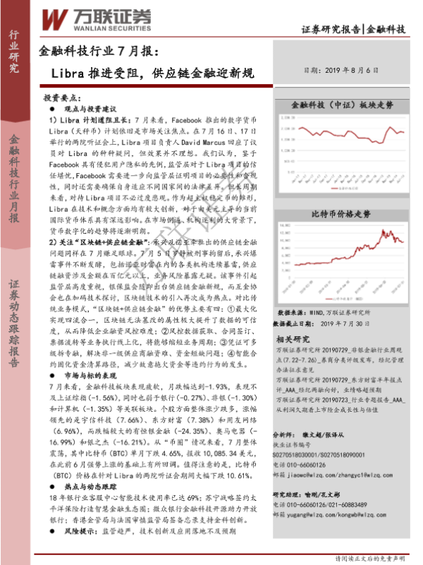 【万联证券】【20190806】金融科技行业7月报:Libra推进受阻,供应链金融迎新规-14页