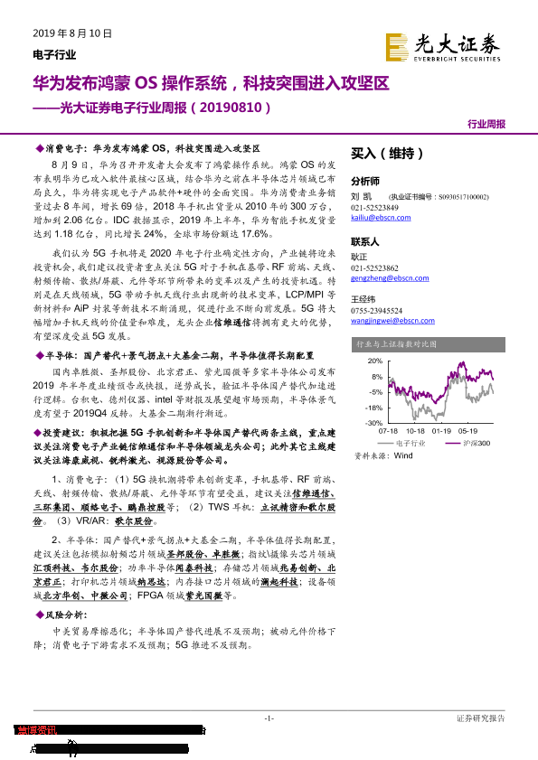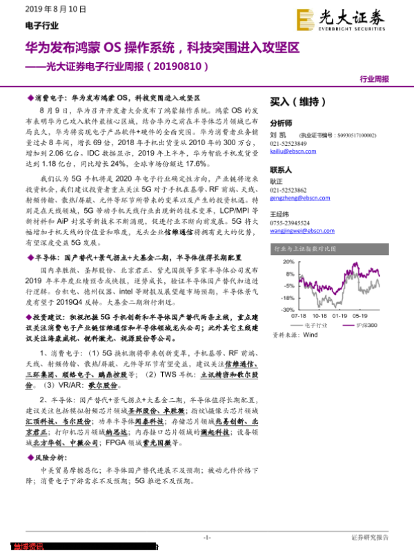 【光大证券】【20190810】电子行业周报:华为发布鸿蒙OS操作系统,科技突围进入攻坚区-19页