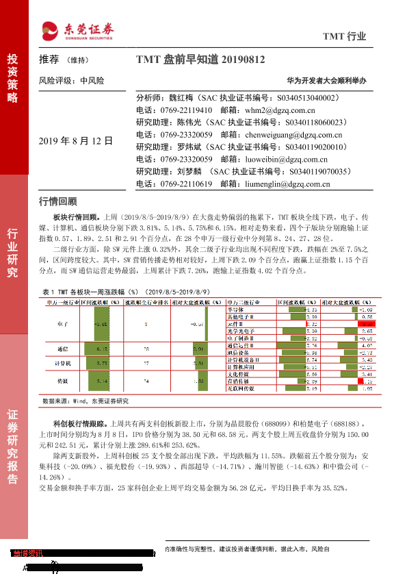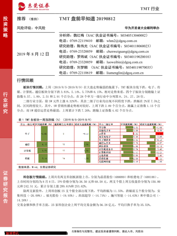 【东莞证券】【20190812】20190812-东莞证券-TMT盘前早知道:华为开发者大会顺利举办-6页