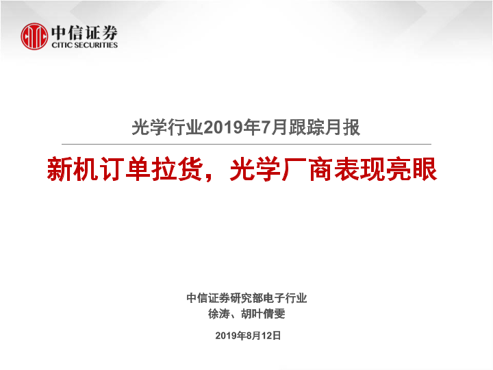 【中信证券】【20190812】光学行业2019年7月跟踪月报:新机订单拉货,光学厂商表现亮眼-19页